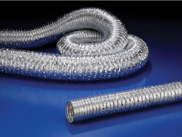 構造:以銀白色耐中高溫無塵厚0.1mm複合鋁箔為風管之材料。內部由寬8mm,厚5mm凹槽形亞鉛支撐金屬片,以螺旋型連續緊密夾扣製成 應用:電子、晶圓製程、LCD,半導體電子用管, 高繞性,耐溫130℃內乾燥、熱風、設備等中高溫設備之通風排氣 性質:精緻易彎曲,可伸縮易安裝,耐中高溫、無塵室 可用彎曲半徑O.D.x1.25/ 顏色─銀色 溫度範圍:-20℃~+130℃ 長度:5M