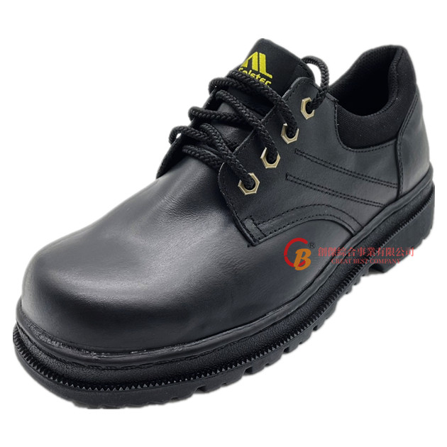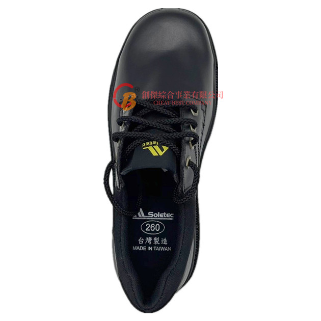 全真皮安全鞋,適合各種場域,鋼頭、鋼板一應俱全,腳後跟有一塊專利T型氣墊,增加舒適性,減緩久站不舒適,解決安全鞋腳痛問題。