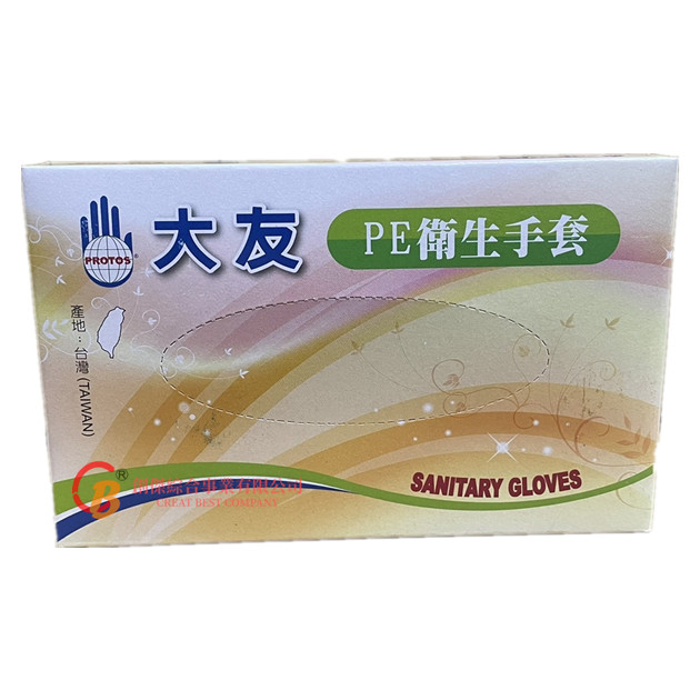 #手扒雞手套 #PE衛生手套 #透明手套 #一次性手套 #拋棄式手套 品名:大友PE塑膠手套(手扒雞手套) 規格:100入/盒(50雙) 材質:HDPE 尺寸:單一 顏色:透明 耐熱溫度:-10度C~+90度C 保存期限:10年 用途 染髮,做飯,烹飪,擦鞋,垃圾處理,廚房,衛生間,臥室,洗車,上蠟,畫畫,手工製作,寵物等。 甚至可以用於商業用途,如食品加工企業,手工製作業等。 ⚠️注意 ★拆封後屬個人衛生用品,恕不接受退貨。 ★此款手套為拋棄式一次性使用,請勿重複使用。