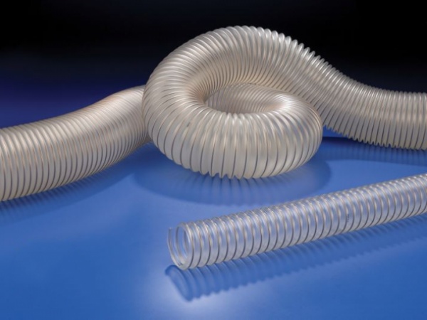 構造:管壁— 聚氨酯(PUR) 螺旋:彈性鋼絲(鍍銅) 壁厚:約0.4mm 應用:有磨損力的固體如灰塵、粉末、纖維、屑片和顆粒,氣體環境如油氣和焊煙,除塵及吸取式廠房 性質:良好的抗化學性,可接地排靜電(依據BGR 132,formerly ZH 1/200),彎曲半徑約等於外徑 溫度範圍:-40℃~+90℃ (瞬間溫度125℃) ※所有產品會隨使用時間而產生老化現象,請定期檢修並更換